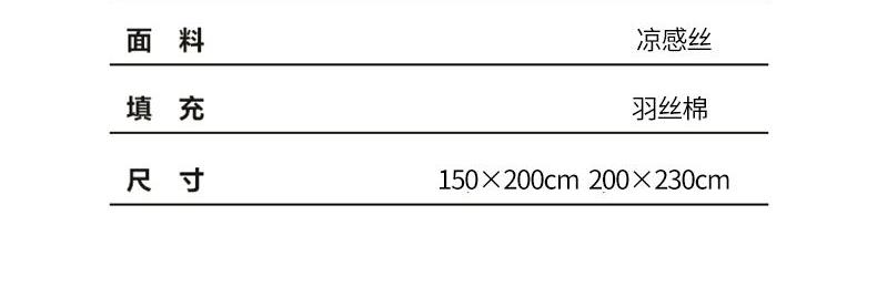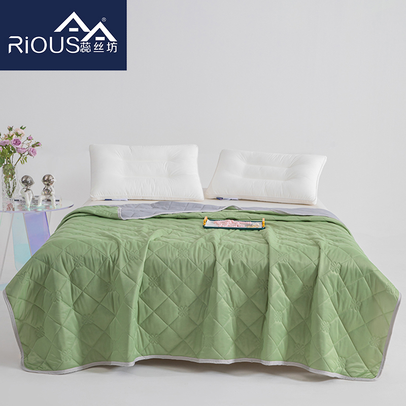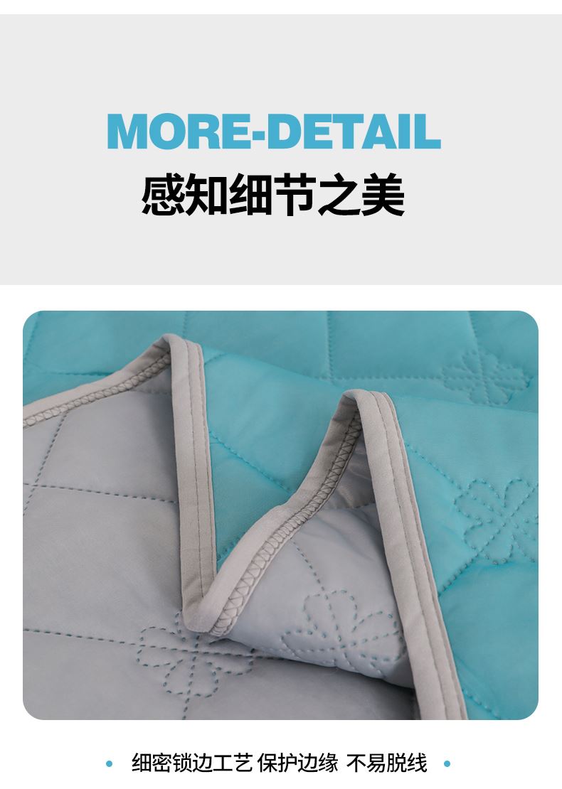 規(guī) 格:150*200cm 花 型:豆沙、果綠、湖藍、魅紫、墨綠、淺粉、淺綠、天藍、 面 料:仿錦氨(聚酯纖維) 填充物:聚酯纖維 面料光澤自然,手感細膩, 透氣滑爽,溫爾不燥,面料采用A類標準科技涼感絲,直接和肌膚親密的接觸,細密鎖邊工藝 保護邊緣 不易脫線,隨便機洗,解放雙手?;ㄊ綗o線絎縫,有效固定填充物。