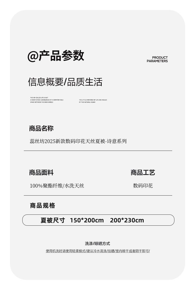 蕊絲坊家紡新款數(shù)碼印花天絲夏被150*200cm