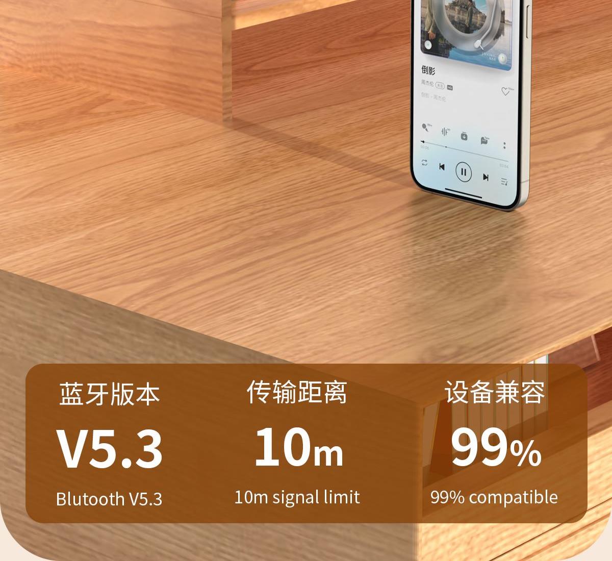 1、小身材大電量,內(nèi)置鋰1000mAh電池 2、喇叭尺寸52mm,喇叭5W,做升壓處理。 3、連接一次后藍(lán)牙有記憶功能開機(jī)即連。 4、支持藍(lán)牙、USB、AUX、內(nèi)存卡、四種模式滿足每時(shí)每刻的音樂氛圍需求 5、滿滿氛圍感桑光氛圍燈 6、TYPE-C充電口