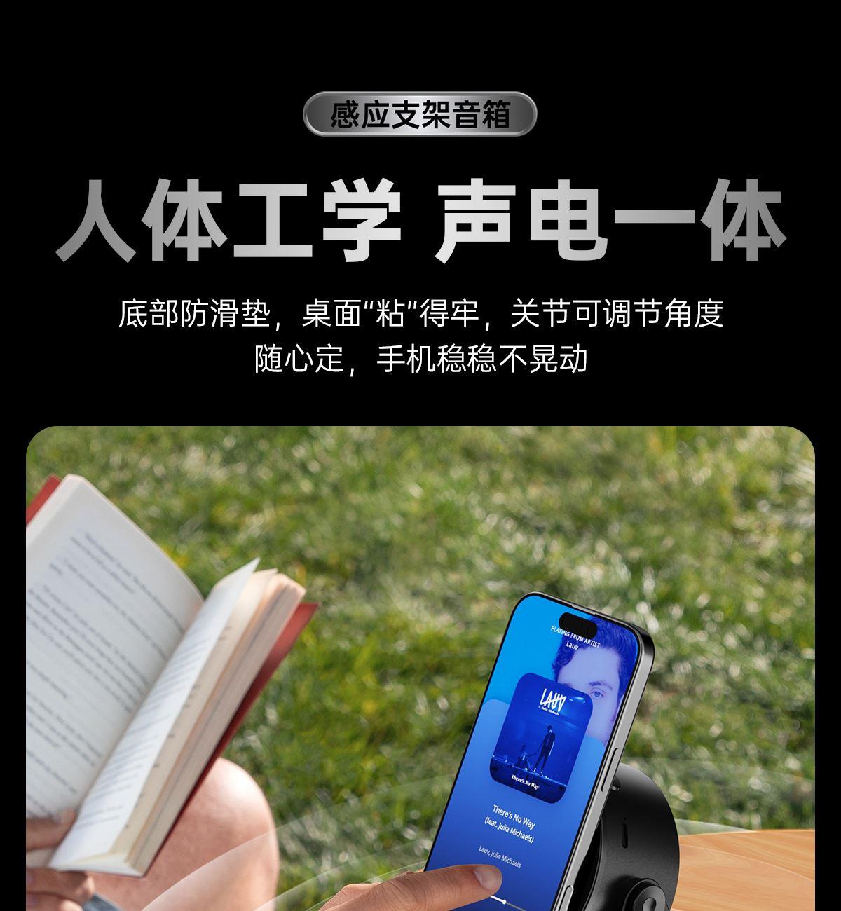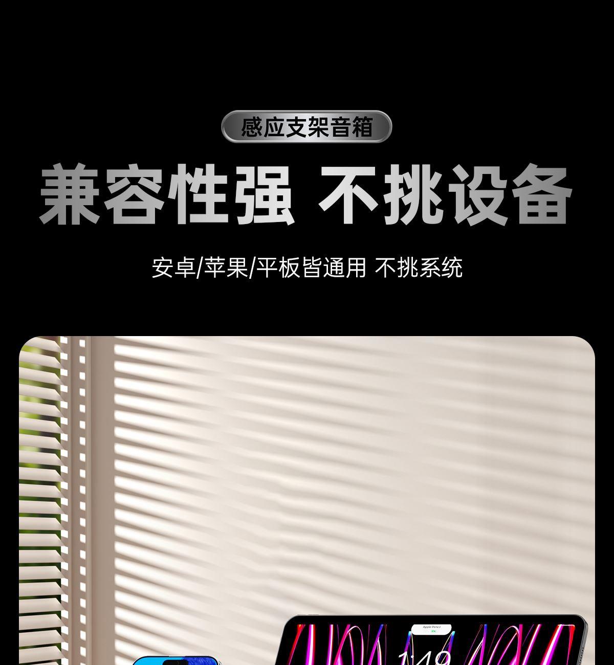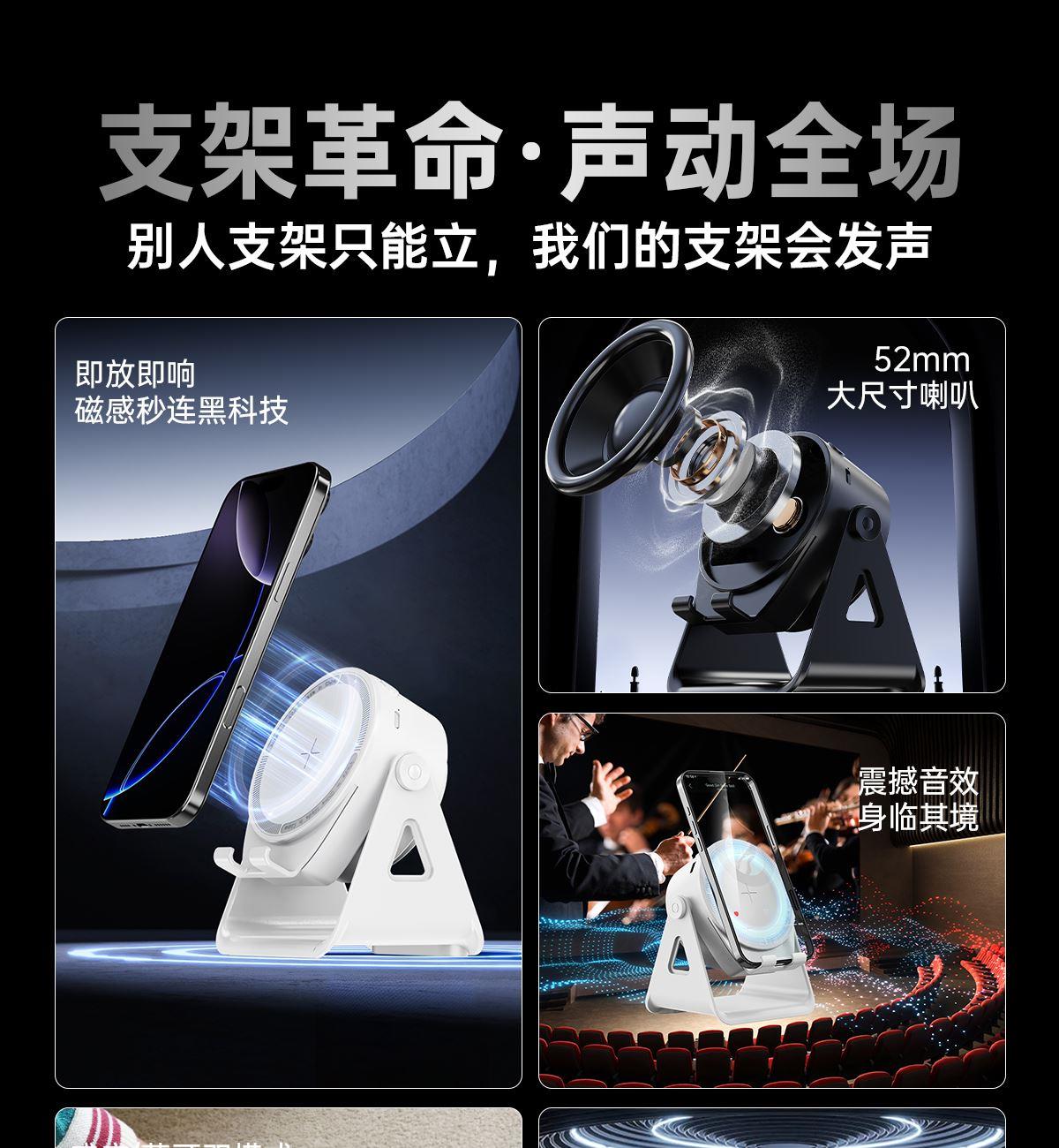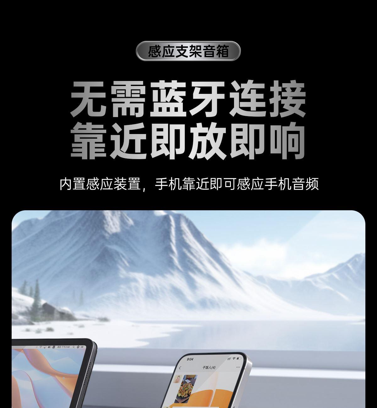 1、黑科技新款感應(yīng)音響,磁感2秒連黑科技,一放即響,無需連接藍(lán)牙; 3.內(nèi)置感應(yīng)裝置,手機(jī)靠近即可感應(yīng)成手機(jī)音頻,聲臨其境; 4、52mm大尺寸喇叭震撼音效,感應(yīng)、藍(lán)牙雙模式隨意切換; 5、兼用性強(qiáng),手機(jī)平板通用; 6.內(nèi)置1200MAH鋰電池持久續(xù)航